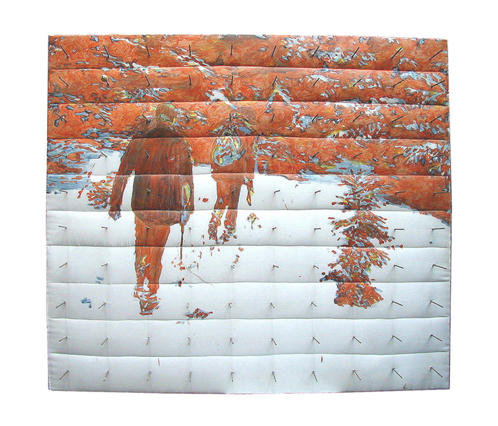nails, acrylic on parka material
