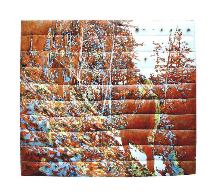 horse hair, acrylic on parka material