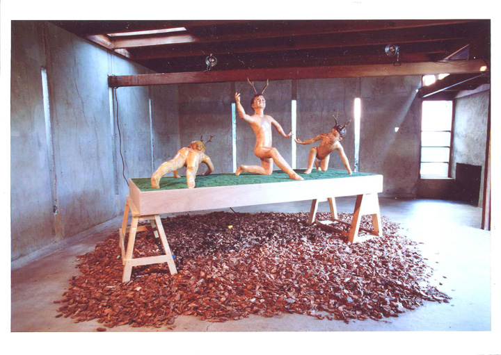 Mahogany, Astroturf, refigured mannequins, TV monitor, VHF tape