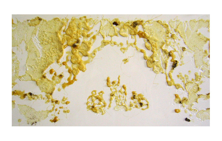 felt, fish glue, abrasions on white plexi & glass